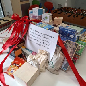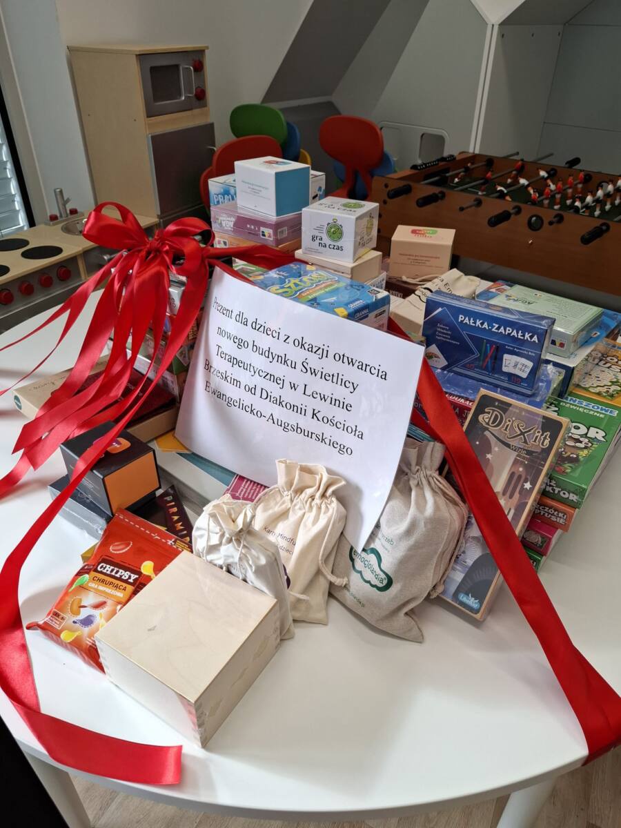 Z okazji otwarcia nowej siedziby Świetlicy Terapeutycznej Diakonia Polska przekazała na użytek dzieci w świetlicy zestaw gier planszowych i edukacyjnych.
